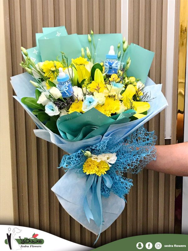 A delightful blend of blue and white florals to celebrate the new arrival.