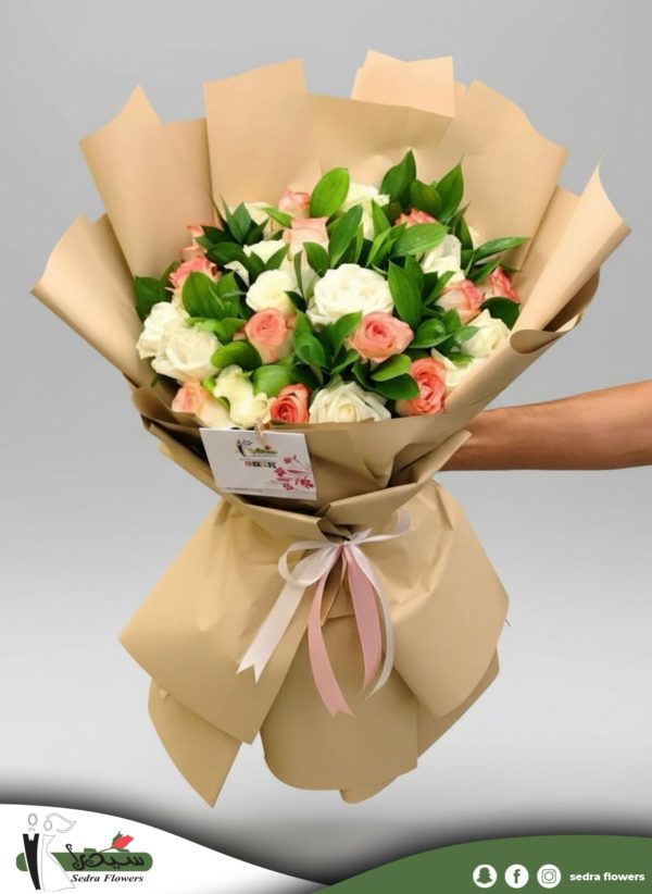 A charming blend of soft pink and pure white roses, symbolizing grace and elegance. Perfect for expressing heartfelt emotions.