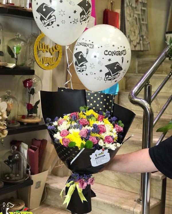 Experience the joy of vibrant colors with our lively flower arrangement, a perfect burst of nature’s beauty for graduation