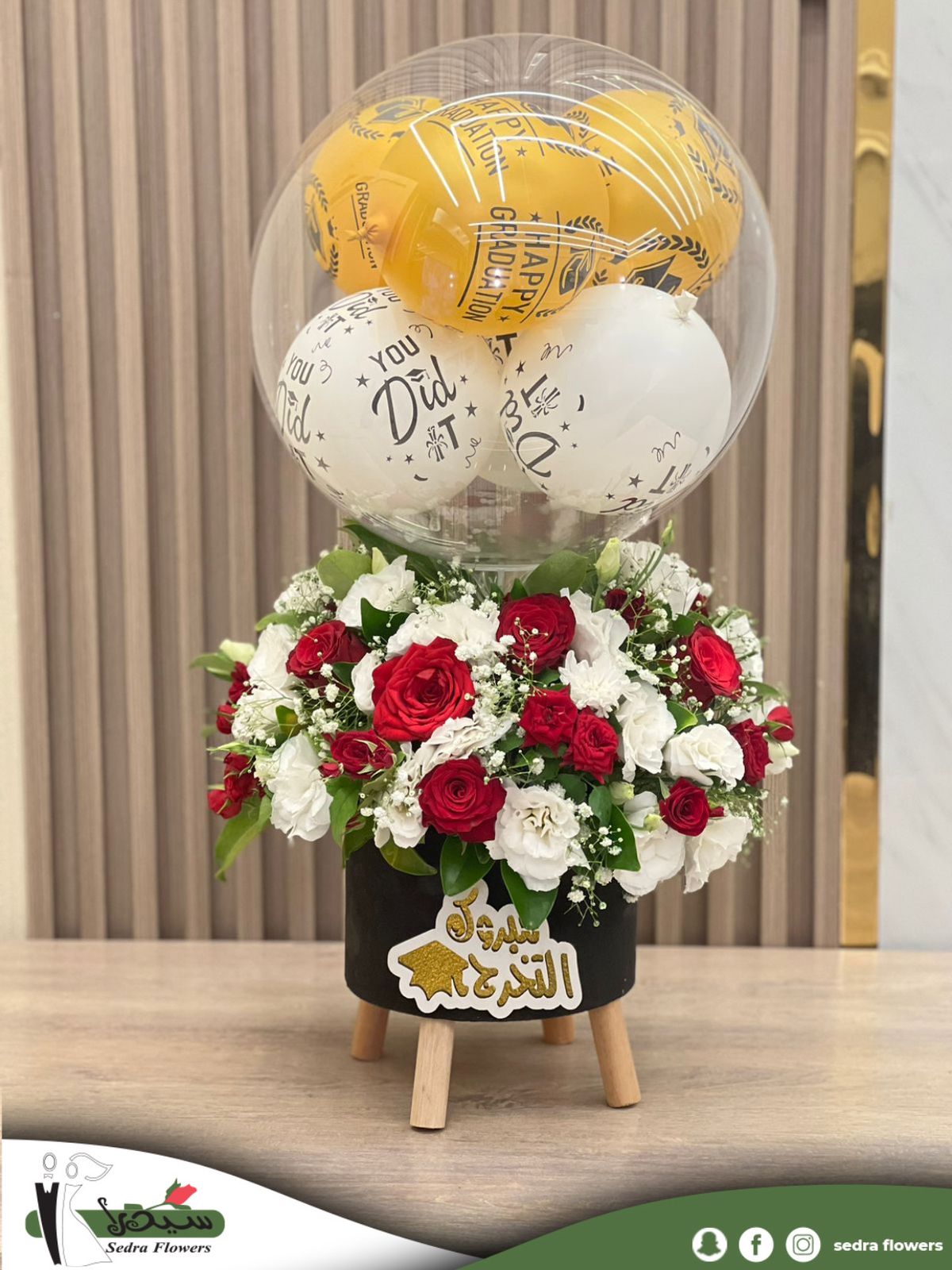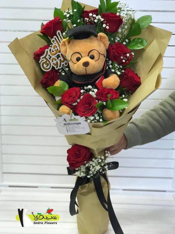 flower bouquet of red flowers and graduation bear
