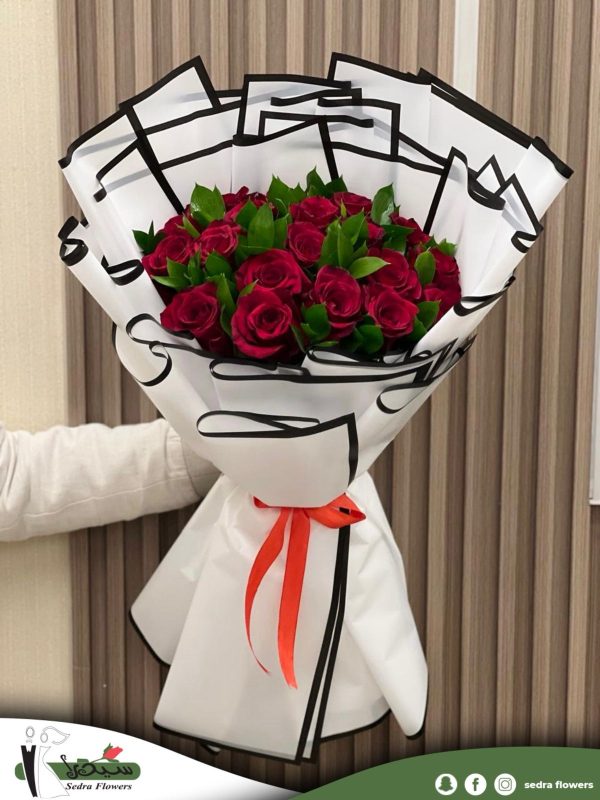Red flower bouquet white wrap