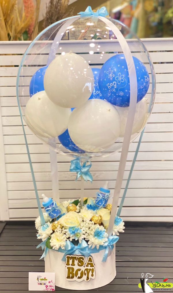 Celebrate the joy of a new baby boy with a delightful flower bouquet and a balloon , a perfect pairing to add color and cheer to the special occasion.
