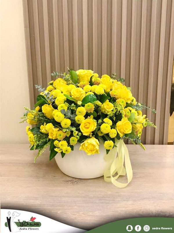 Send comfort and cheer with our yellow flower in rounded white vase a visual embrace for a speedy recovery.